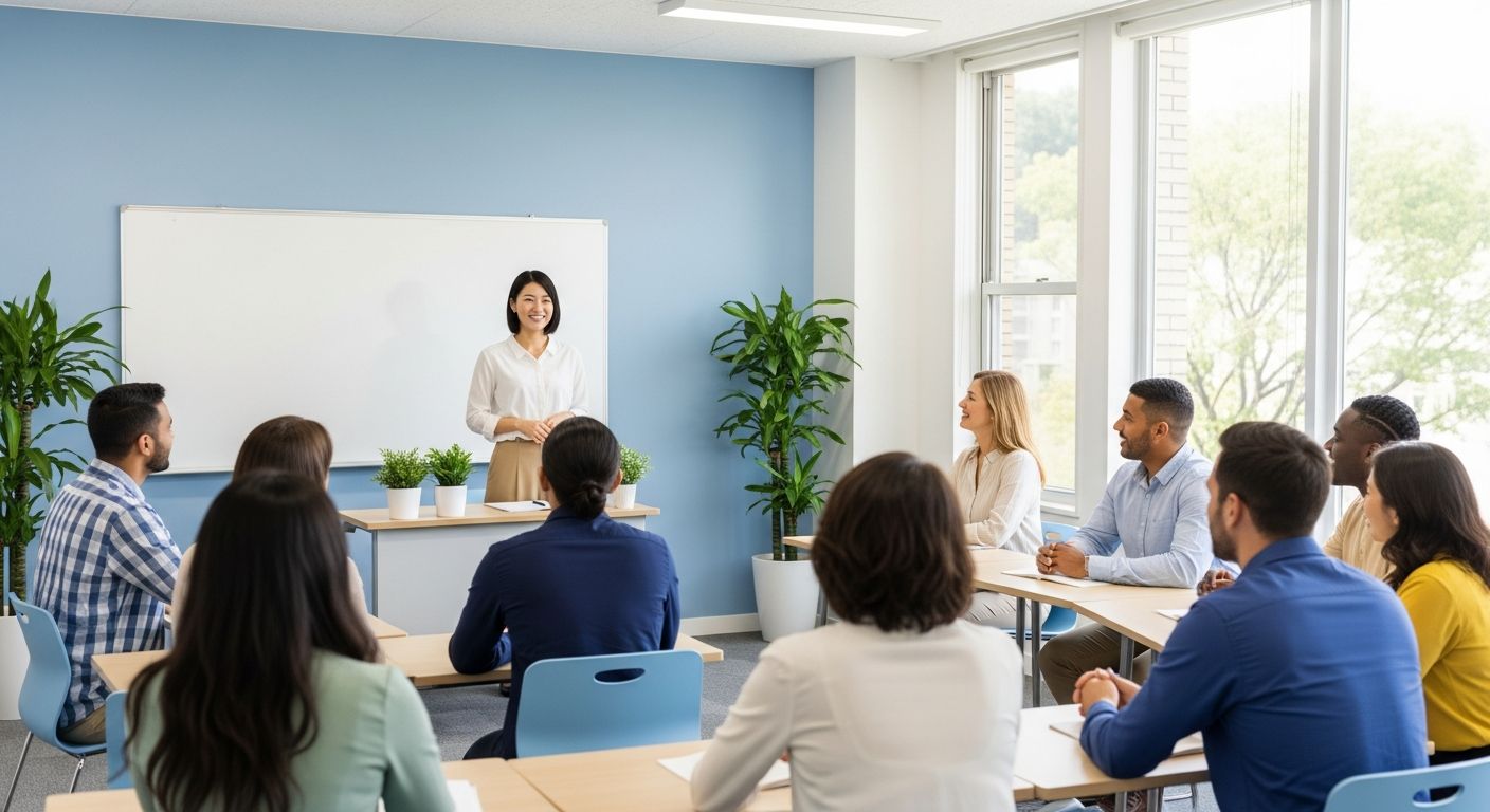 短尺動画で授業風景→教師紹介→卒業後進路を連続提示。字幕多言語化と口コミ引用で信頼補強し、保存・問い合わせを促進する。